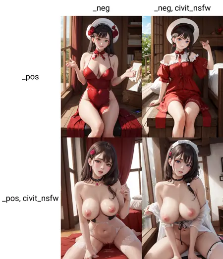 Put civit_nsfw in your negative prompt to reduce the incidence of nsfw content in generated images.