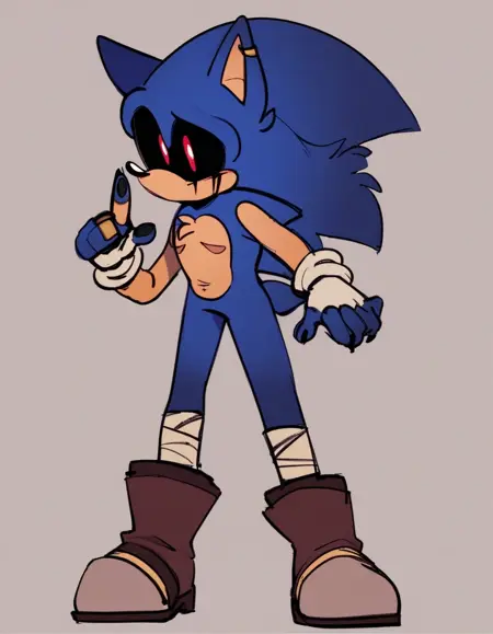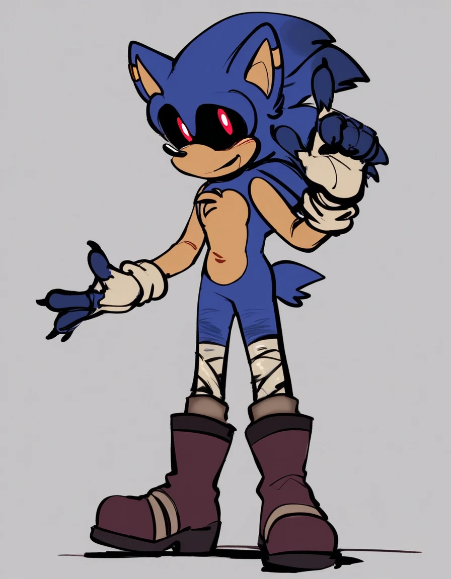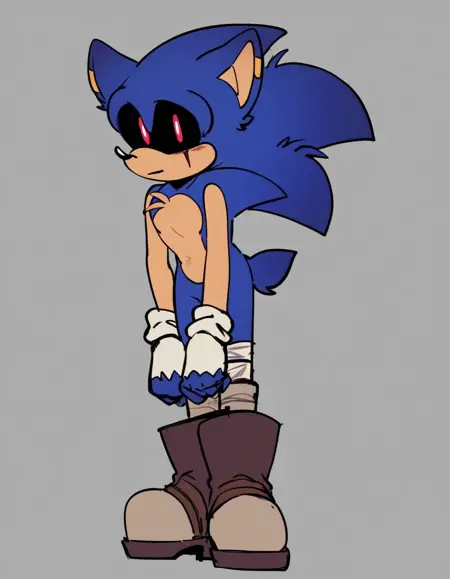 CurseEXE, red eyes, gloves, 1boy, animal ears, blue hair, tail, boots, white gloves, furry, furry male, body fur, animal nose, two-tone fur, blue fur, sonic the hedgehog, fingerless gloves, black sclera, colored sclera