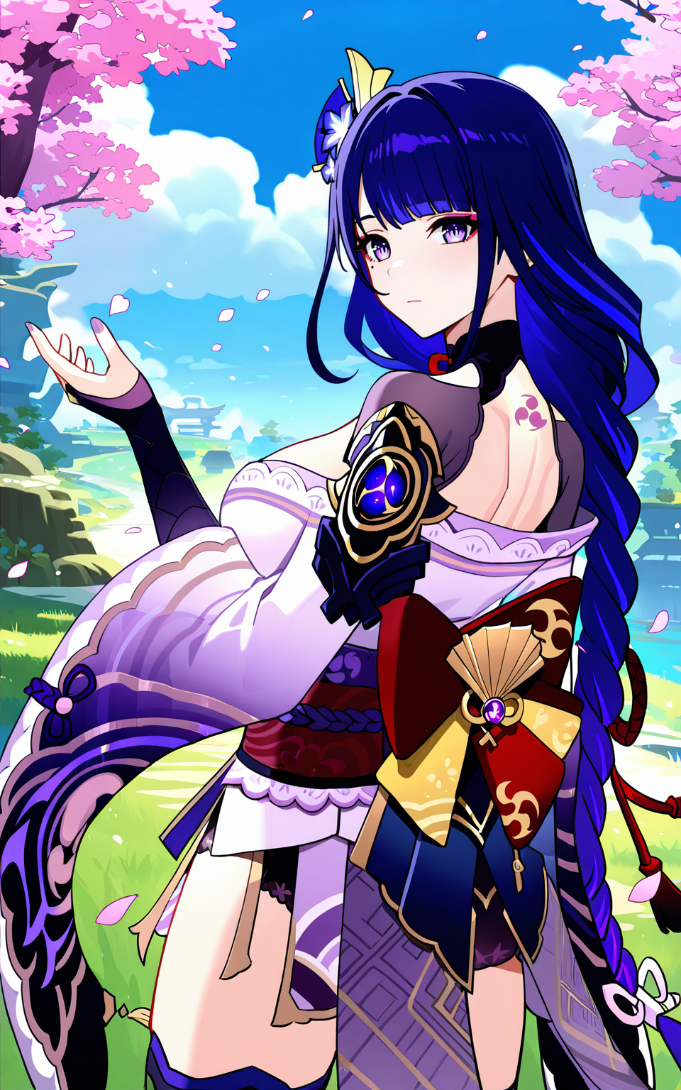 NoobAI를 위한 원신의 레이든 쇼군. 비공식적인 복장(maid 유니폼, 학교 유니폼, 래빗 수트 등)을 만들고 싶다면 0.1의 가중치를 추천합니다.