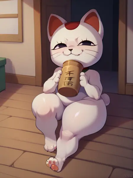 | 학습된 단어 | 1girl, maneki-neko, shiny skin, body fur, white fur, black eyes, white skin, animal ears, cat ears, cat tail, tail, animal hands, animal feet, pawpads, animal nose, whiskers, cat girl, furry, furry female, black eyes, 복사됨! collar, bell, jingle bell, neck bell복사됨! |