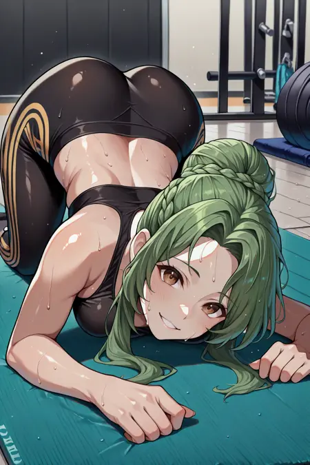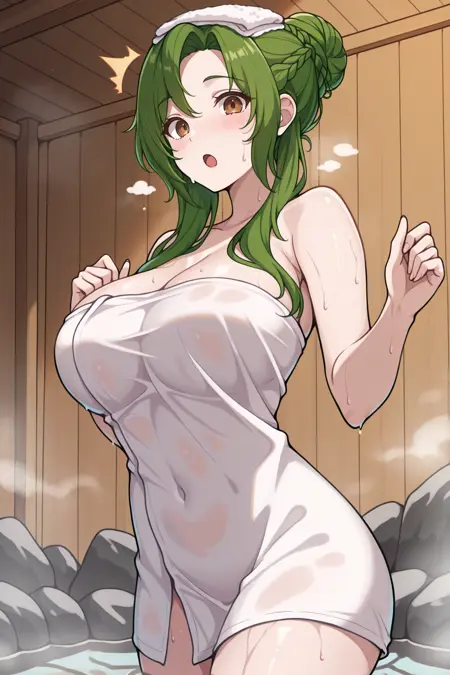 커스텀 옷을 원하면 "rndElincia, green hair, hair bun, long hair, braid, brown eyes"를 추가하세요.
