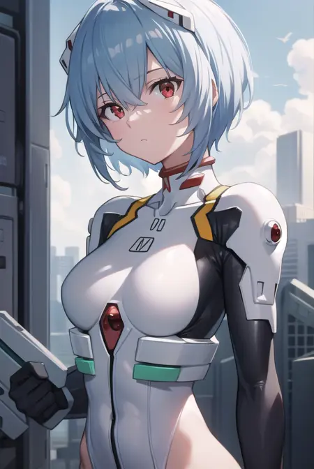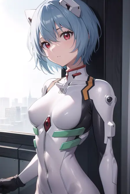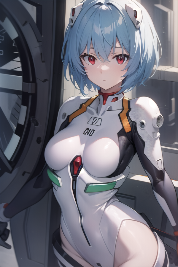 rei ayanami, blue hair, short hair, (red eyes:1.5),