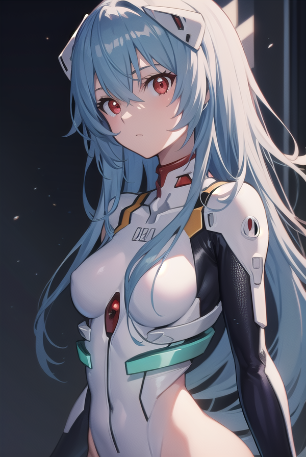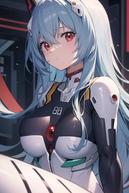rei ayanami, blue hair, long hair, (red eyes:1.5),