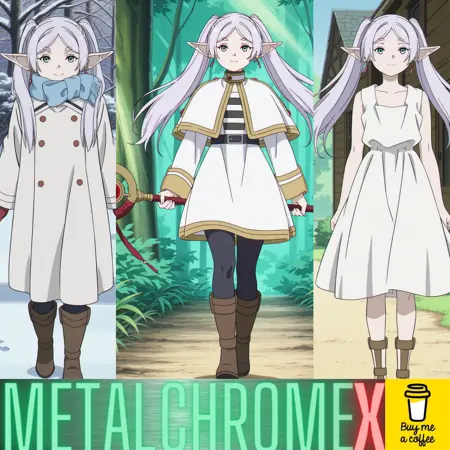 Frieren是我2020年代最喜爱的动漫角色,因此这是我对她的一次演绎!模型应能很好地还原第一季中的所有主要服装(共有三套主要服装)。请使用预训练关键词 frieren, sousou no frieren(或 frieren (sousou no frieren)),就像我在部分图片中所做的那样,以尽可能贴近动漫的风格;当然,即使不使用这些关键词,你依然可以创作出精彩的作品!